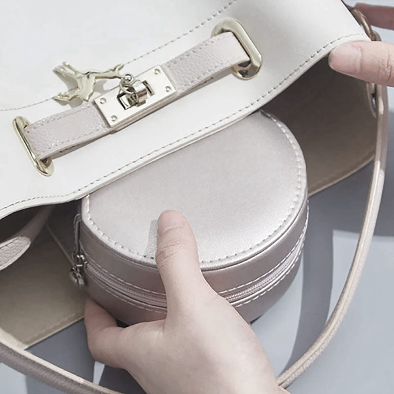 10 CM Round Mini Travel Jewelry Storage Box with Zipper Portable Waterproof Organizer for Rings Earrings Necklaces and Bracelets