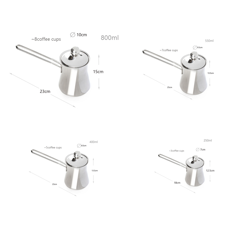 - Multipurpose- It is not only a Turkish coffee maker, but also can be a milk, butter warmer, milk frother, heating up sauces, boiling eggs and more, it can be used very practically for heating up your ingredients.