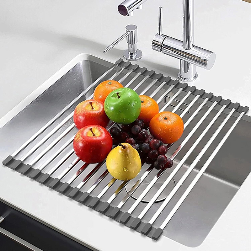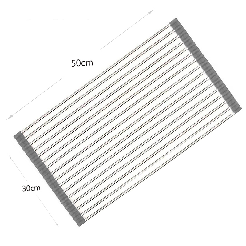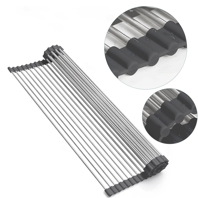 50 CM Stainless Steel Sink Drying Rack Roll Up Dish Drying Rack Over Sink Drying Rack Drain Rack for Kitchen Sink Counter Vegetables and Fruits